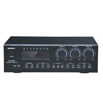 额定功率(RMS):280W+280W/8欧 峰值功率(RMS):600W 信噪比(1m/1w):97dB 频率响应(-3dB):20Hz-20KHz+_1dB 推荐阻抗:8欧 输出阻抗:4-16欧 效果类型:ECHO/REV/ECHO+REV 音调控制:+-8dB 输入灵敏度(dB/1m/1w):20mv+-10%/2k欧 总谐波失真(1KHz,8欧):〈0.05% 电源供应:AC220V,50Hz/60Hz 尺寸:430*150*410mm 净重:16Kg